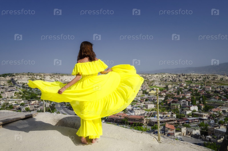 Женщина стоит в национальном парке Гереме в Каппадокии, Турция