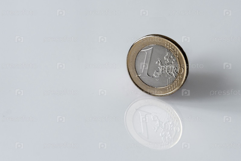 Одна монета евро на белом фоне