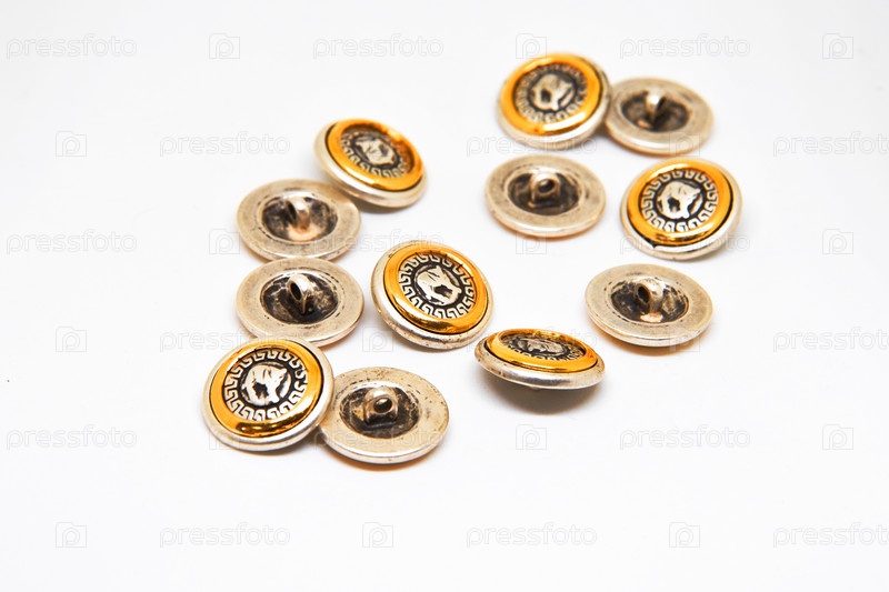 Металлические пуговицы для одежды на белом фоне для концепции Дня пуговиц