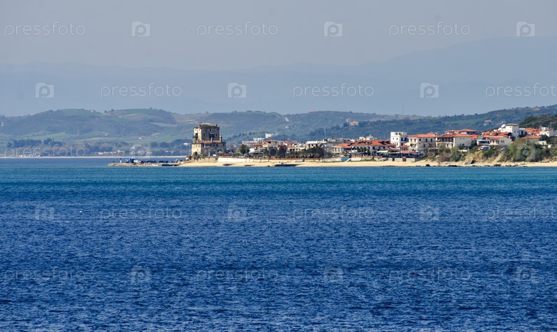 Исторический форт в порту и городе Урануполис, место входа в монастыри горы Афон, Халкидики, Греция