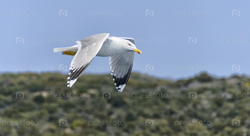 Чайка летит в небе