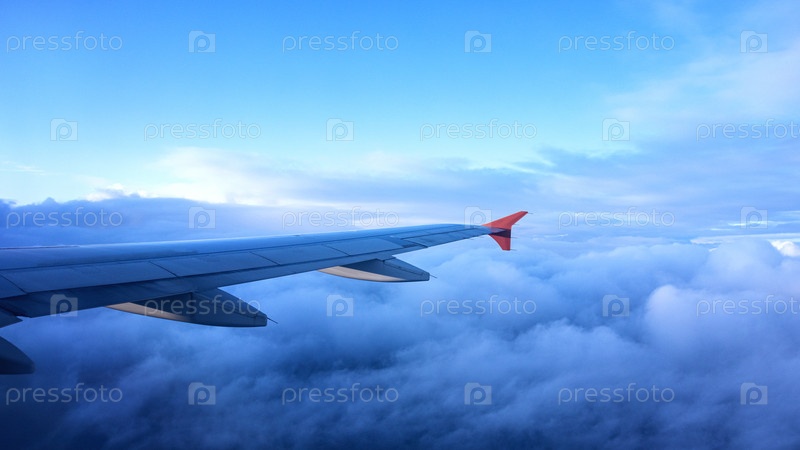 Красивые нежные цвета заката, снятые из окна самолета