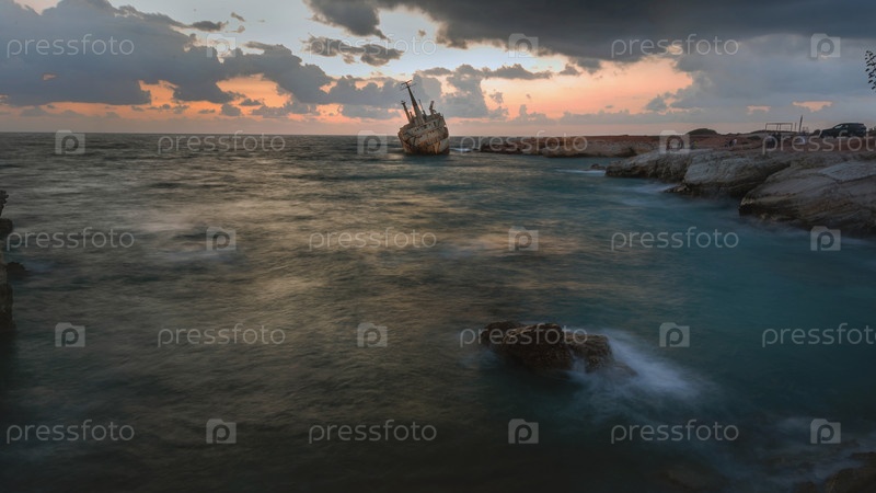 Кораблекрушение (Эдро III) на закате недалеко от Пафоса, Кипр
