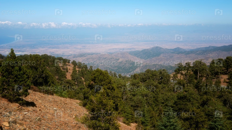 Горный лесной пейзаж, природная тропа Троодос, Кипр. Вид с пика Олимбос