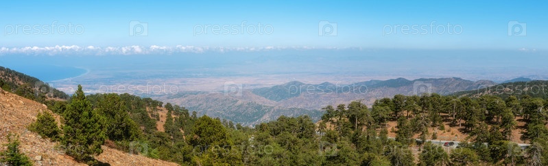 Горный лесной пейзаж, природная тропа Троодос, Кипр. Вид с пика Олимбос