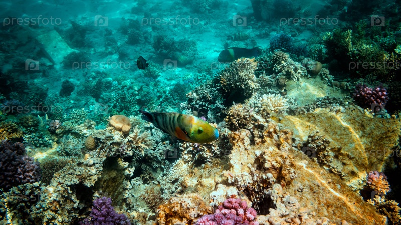 Красочный коралловый риф с экзотическими рыбами Красного моря. Египет