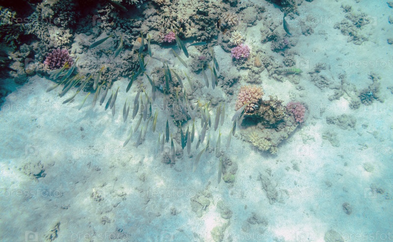 Красочный коралловый риф с экзотическими рыбами Красного моря. Египет