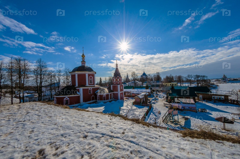 СУЗДАЛЬ, РОССИЯ - 08 марта 2015 г.: Зимний день в российском городе Суздаль. Один из самых популярных городов Золотого кольца