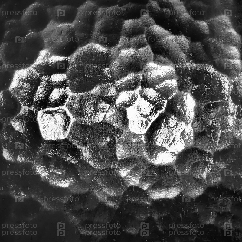 Рифленое стекло, задний источник света. Игра бликов и отражений на прозрачной неровной поверхности. Темные и светлые абстрактные асимметричные многоосвещенные плоскости. Абстрактный странный фон