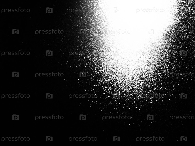 Белое боке и луч на черном фоне. Размытое свечение сверху на темной поверхности. Ночная или космическая тема. Боке к празднику. Абстрактный фон. Блики, луч и свет сияют сверху