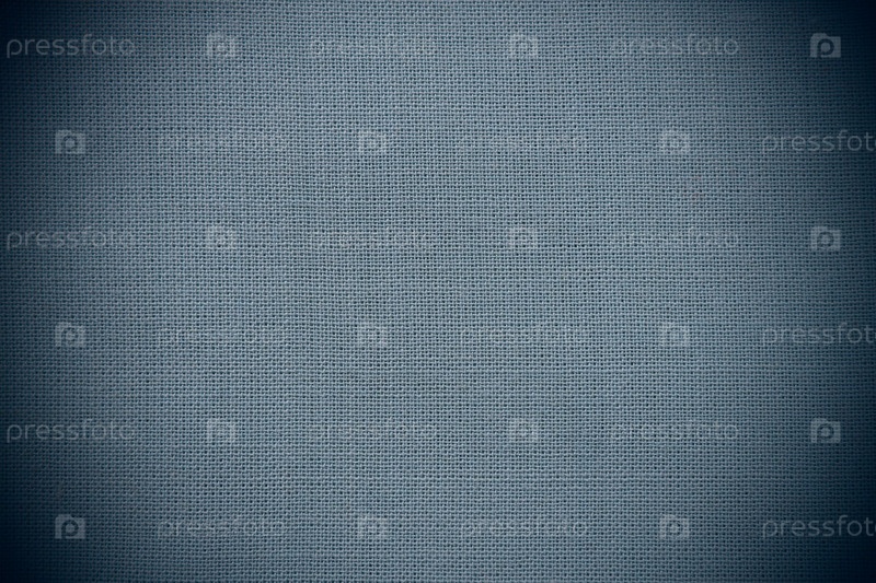 Текстура натуральной синей ткани крупным планом. Текстура ткани выполнена из натурального хлопкового или льняного текстильного материала. синий фон холста. Гладкая поверхность, гладкая ткань. Темное виньетирование