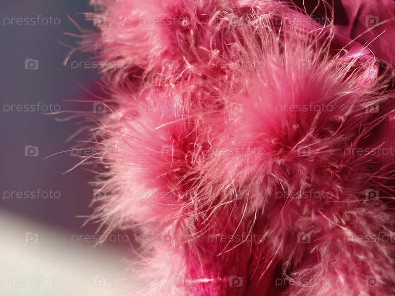 Розовый искусственный мех или натуральные птичьи перья розового цвета крупным планом. Боа из легких перьев. Нежная текстура. Открытка с Днем Святого Валентина. Воротник от женского или девичьего жакета. Ярко-розовый или цвет