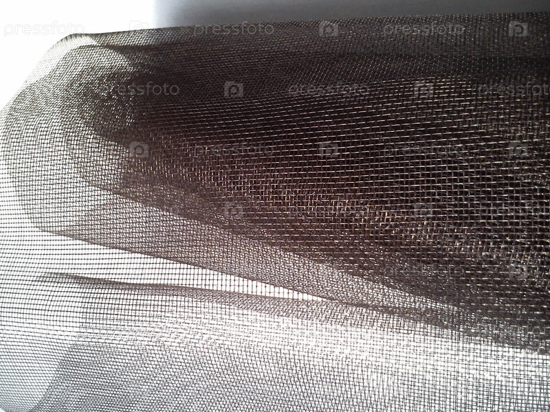 Москитная сетка в рулоне. Коричневый синтетический материал на белом фоне. Плетение из пластиковых нитей. Свернутая решетка