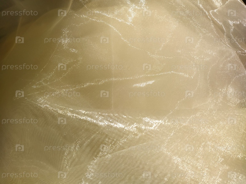 Органза белого и бежевого или цвета шампанского крупным планом. Легкие прозрачные тюлевые шторы при боковом освещении