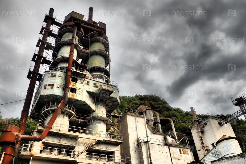 Мали Зворник, Сербия, 29 сентября 2022 г. Цементный завод, шахта Брасина. Промышленная архитектура. Смог и грязная пыль, загрязнение воздуха, промышленный фон на открытом заводе по дроблению и копанию камней