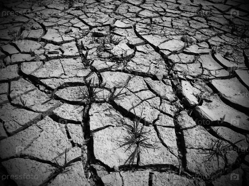 Глубокие трещины в земле как символ жаркого климата и засухи. Пустыня и потрескавшаяся земля. Неровная, вздутая земля. Экологическая и природная тема. Виньетирование. Черно-белый монохромный
