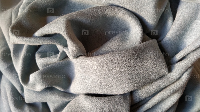 Серо-голубые бархатные шторы в гостиной. Ткань складывается волнами. Короткий ворс. Игра света в складках одежды. Красивый, приятный на ощупь, дорогой материал