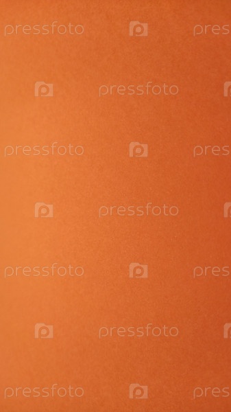 Лист плотной бумаги ярко-оранжевого цвета. Крупный план. Фон интенсивного оттенка. Естественное боковое освещение. Тонкая текстура картона или бумаги. Световой градиент по степени освещенности. Скопируйте пространство
