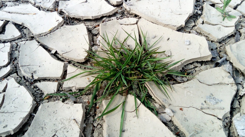 Зеленая трава, растущая сквозь сухие трещины. Пустыня