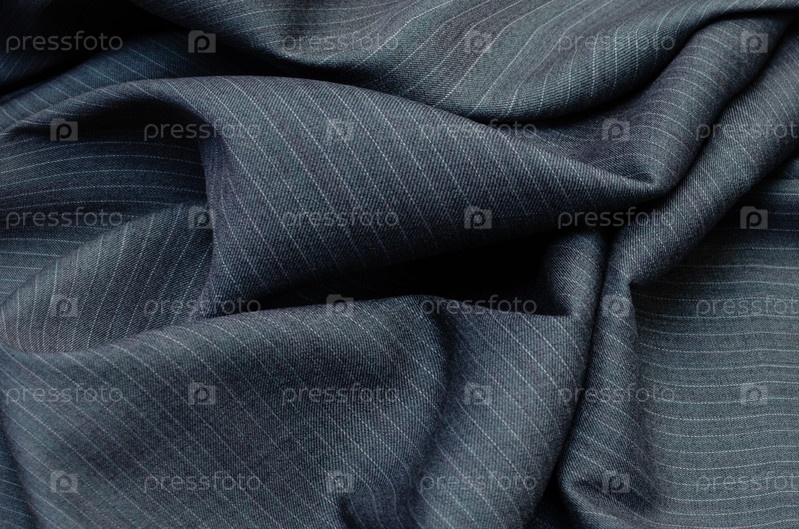 Крупный план текстуры ткани в тонкую полоску для производства одежды темно-серого цвета. Шерстяной текстиль для костюмной моды