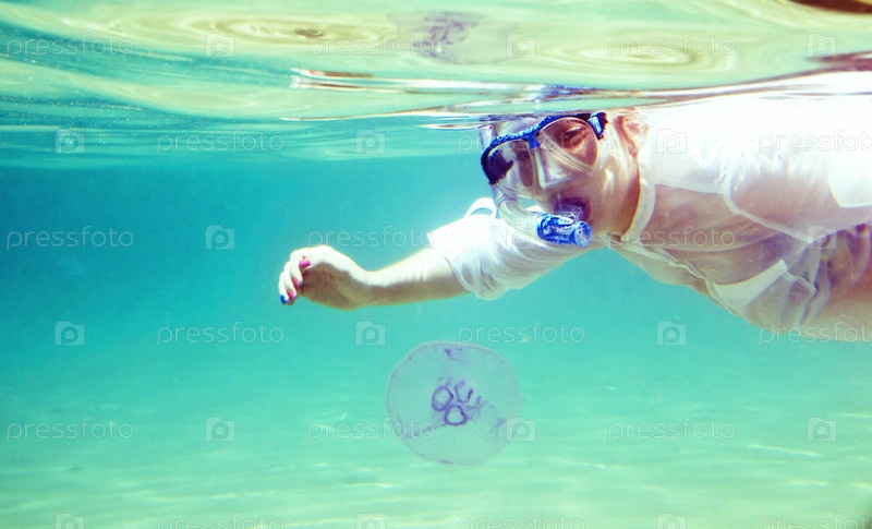 Девушка с маской в красном море
