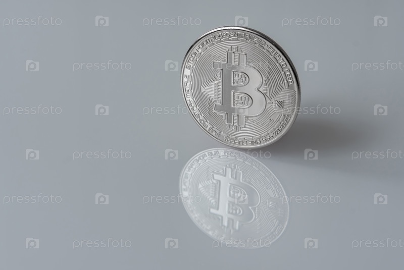 Мокет цифровой валюты серебряный биткоин (BTC), изолированный на белом цвете с окрашенным контуром и гладкой тенью