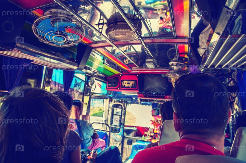 Путешественники в автобусе в Таиланде