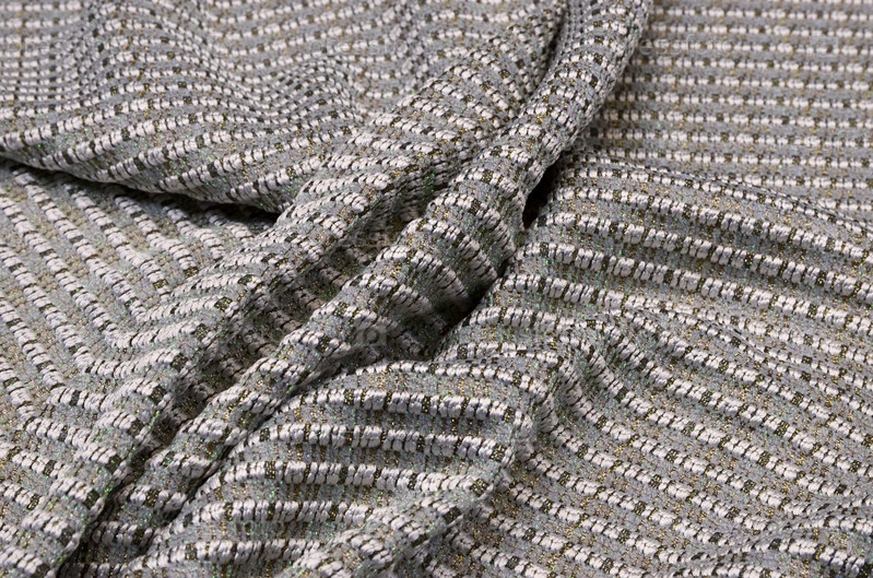 Шерстяная ткань с акрилом и люрексом, серая с золотом