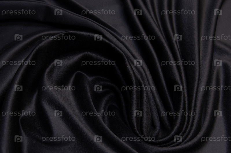 Черный фон текстуры ткани, волнистая ткань скользкого черного цвета, роскошная текстура атласной ткани