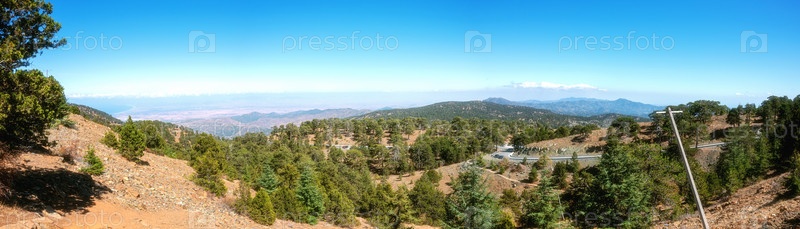 Горный лесной пейзаж, природная тропа Троодос, Кипр. Вид с пика Олимбос