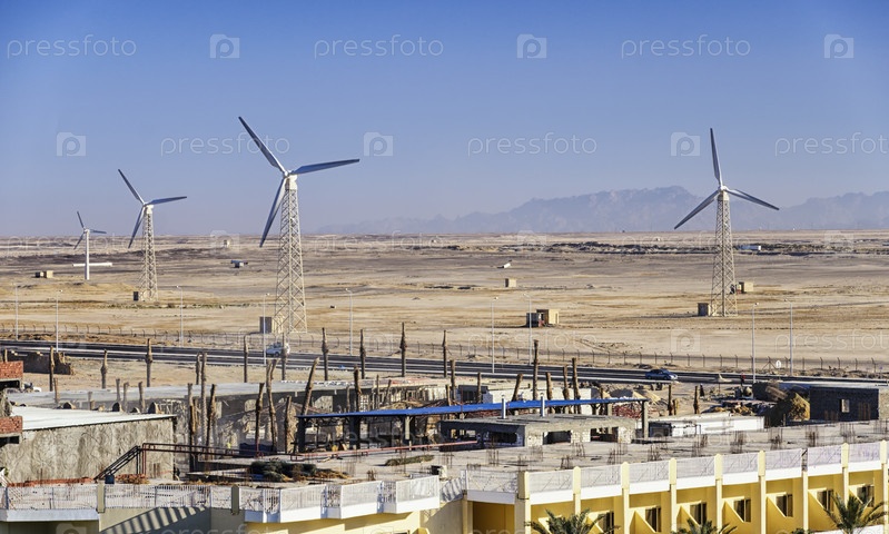 Ветряная электростанция для производства электроэнергии недалеко от Хургады. Египет. Африка