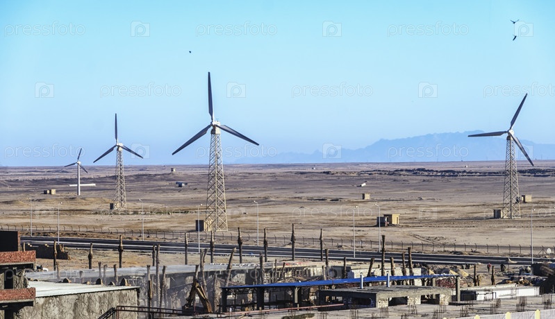 Ветряная электростанция для производства электроэнергии недалеко от Хургады. Египет. Африка