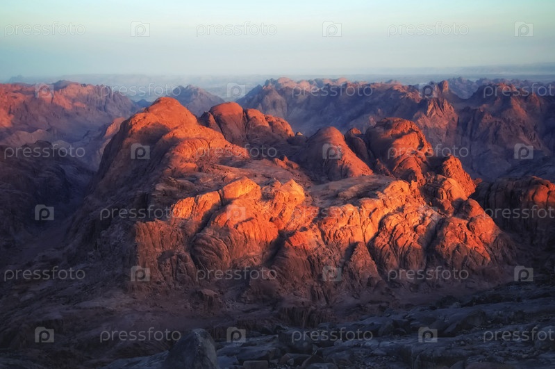 Восход солнца на вершине горы Моисей на Синайском полуострове в Египте