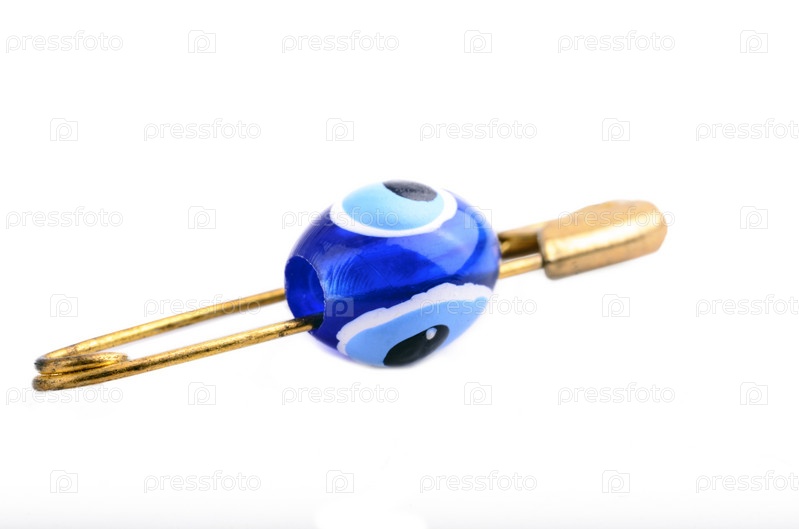 Злой глаз на булавке, изолированной на белом