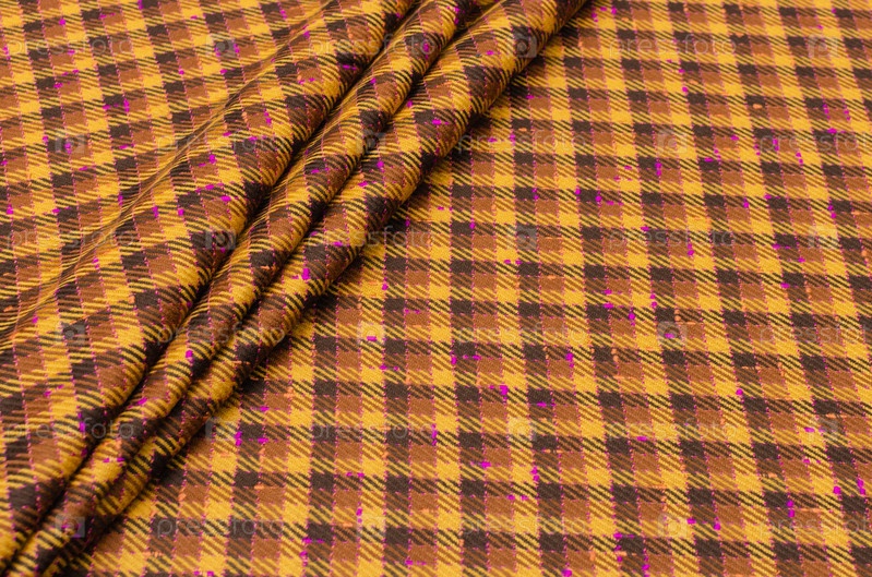 Ткань шерстяная, костюмная, розовая клетка на желто-коричневом