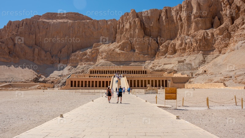 Туристы перед комплексом Дейр аль-Бахари и храмом Хатшепсут, Луксор, Египет, 11 апреля 2021 г