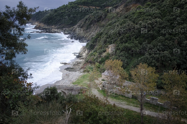 Береговая линия горы Афон осенью