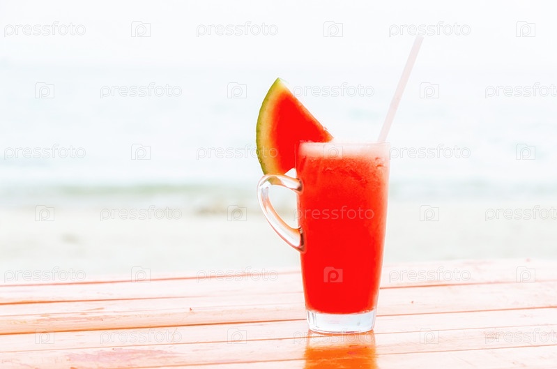 Свежий арбузный сок на тропическом пляже