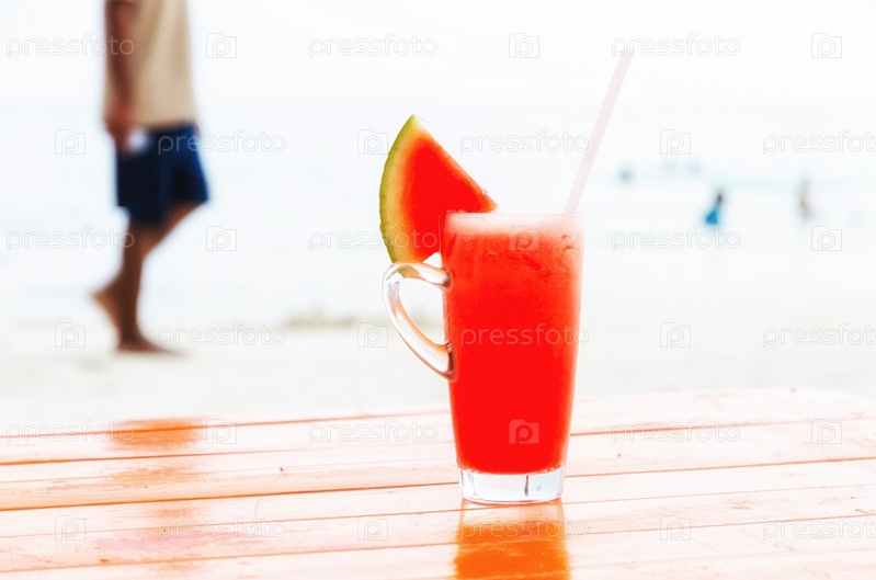 Свежий арбузный сок на тропическом пляже