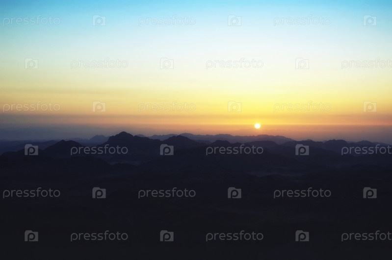 Восход солнца на вершине горы Моисей на Синайском полуострове в Египте