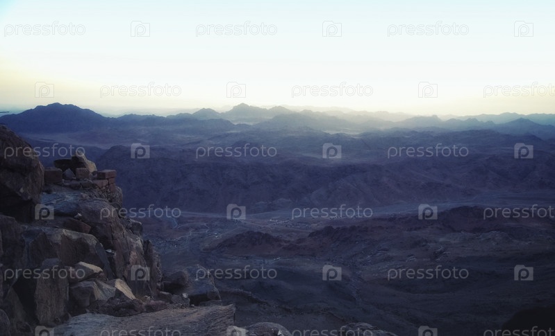 Восход солнца на вершине горы Моисей на Синайском полуострове в Египте