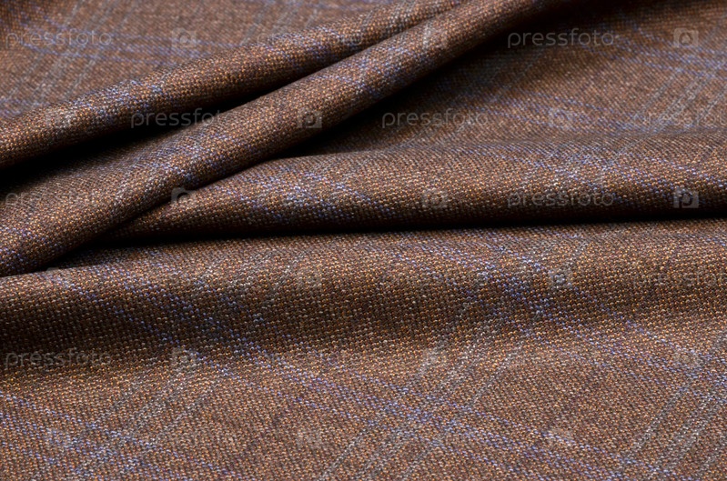 Ткань костюмная шерстяная, клетка коричнево-синяя