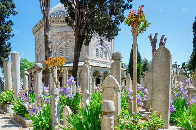 Старое историческое османское мусульманское кладбище. Исламские надгробия на кладбище мечети Сулеймание