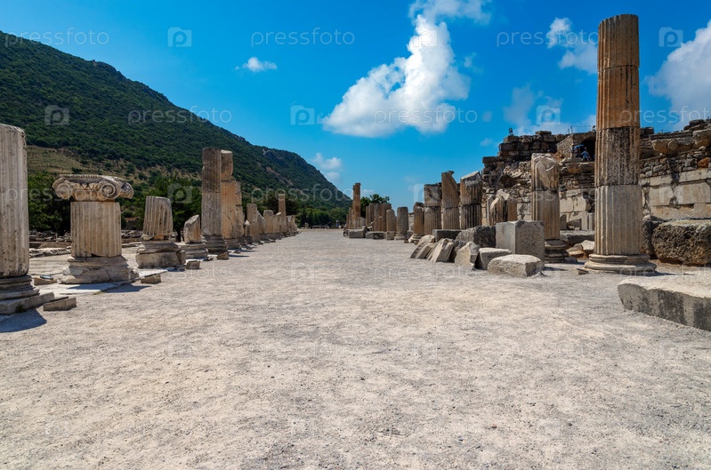 Руины древнегреческого города Эфес или Эфес на побережье Ионийского моря в Сельчуке, провинция Измир, Турция в летний день