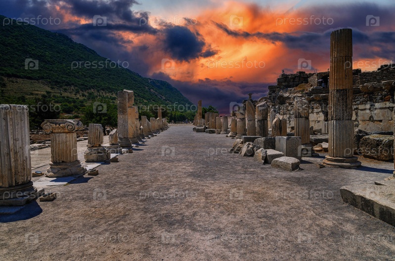 Руины древнегреческого города Эфес или Эфес на побережье Ионийского моря в Сельчуке, провинция Измир, Турция в летний день