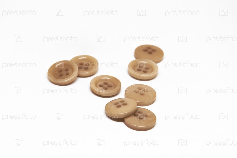 Белые пуговицы для одежды на белом фоне для концепции Дня пуговиц