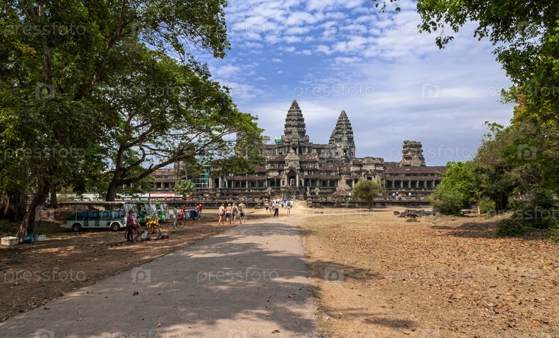 КАМБОДЖА, Сием Рип, Ангкор-Ват, 9 марта 2011 г.: Неопознанные туристы наблюдают комплекс храма. Ангкор-Ват — крупнейший религиозный памятник в мире в провинции Сием-Рип, Камбоджа