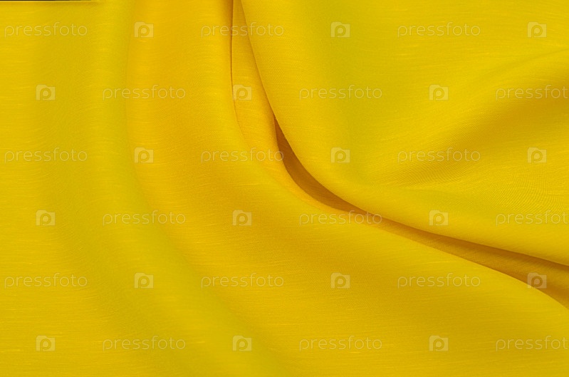 Крупный план натуральной оранжевой или желтой ткани или ткани того же цвета. Текстура ткани из натурального хлопка, шелка или шерсти или льняного текстильного материала. Желтый фон холста