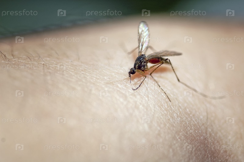 Комар сидит на коже
