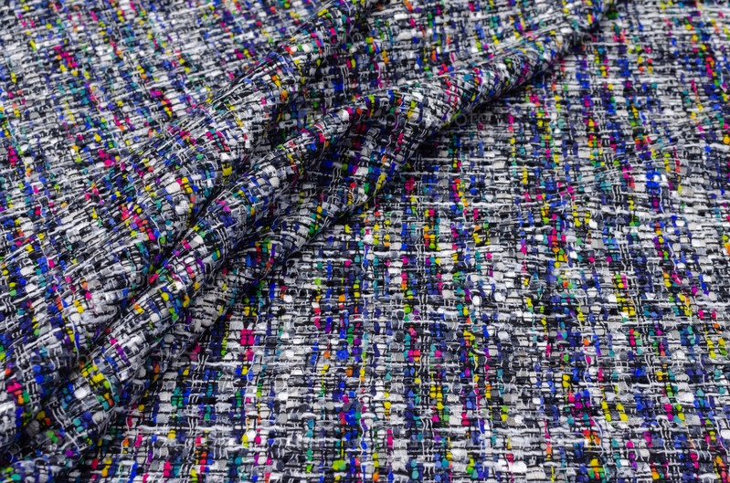 Твидовая ткань с яркими вставками на черно-белом фоне